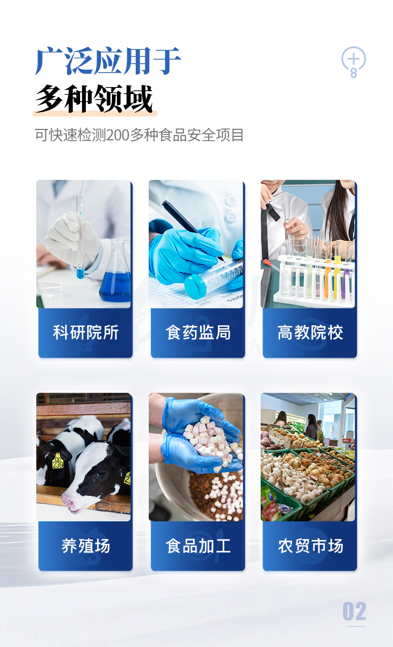該旋轉(zhuǎn)式食品安全檢測(cè)儀為集成化食品安全快速檢測(cè)分析設(shè)備,目前已于食藥監(jiān)局、衛(wèi)生部門、高教院校、科研院所、農(nóng)業(yè)部門、養(yǎng)殖場(chǎng)、屠宰場(chǎng)、食品肉產(chǎn)品深加工企業(yè)及檢驗(yàn)檢疫部門等單位廣泛使用。