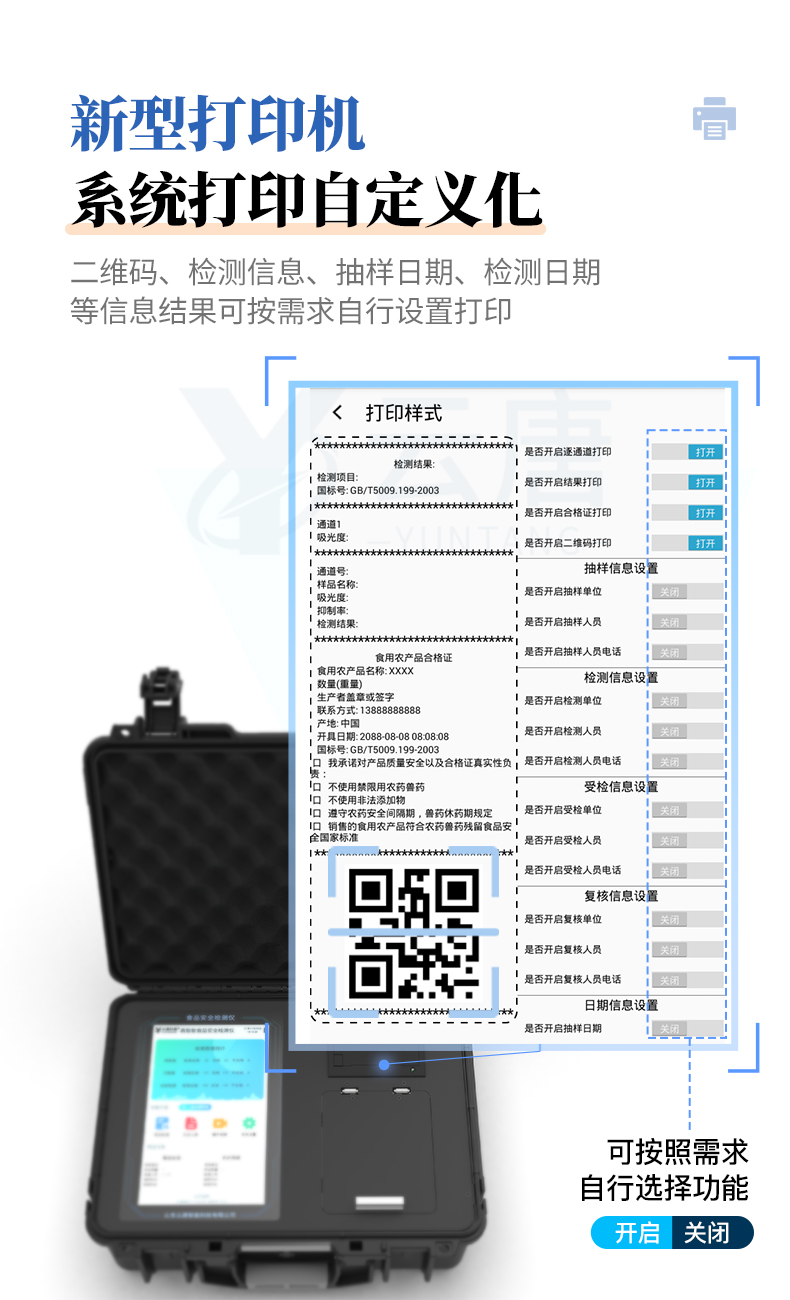 *10、系統(tǒng)打印自定義化,打印格式多樣化,產(chǎn)品合格證(國(guó)家標(biāo)準(zhǔn)要求),二維碼,抽樣信息、檢測(cè)信息,受檢信息、復(fù)核信息、抽樣日期、檢測(cè)日期等信息結(jié)果,可按需求自行設(shè)置打印。